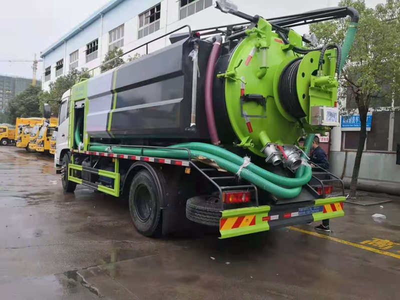 罐體總容積15立方米,清洗5方,吸污10方,兩倉互通,中間吸污罐體采用8mm碳鋼,新山東濰柴180匹馬力發動機帶2BE204水循環泵,進氣管加過濾網,后蓋4個卡子鎖緊,罐體兩側加寬平臺加護欄,后部一個150mm的球閥一個100mm的球閥,送8米吸污管,后面加一個LED工作照明燈,加LED箭頭燈,駕駛室上方裝長警燈配進口品浮高壓清洗泵,270流量,19兆帕,配60米內徑22#高壓管,組合噴頭10個,清洗卷盤安裝在后后封頭上,整車顏色可選.