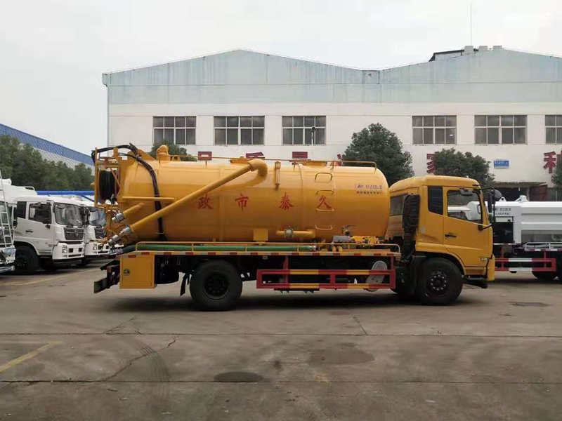 容積:15方(水罐和污罐容積可以自由分配),罐體厚度6MM,罐頂帶平臺,尾部圓孔玻璃視糞窗鏡,帶箭頭燈。