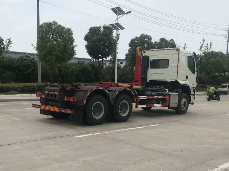 上裝配置:】勾起能力20T,設(shè)備自重2400Kg,鉤臂伸縮量1000mm,鉤箱時間45S,鉤心高度1570mm,鉤心到后滾輪距離5275mm,拉臂鉤結(jié)構(gòu)件Q460高強鋼Q345低合金高強鋼,該車是由汽車底盤、拉臂主油缸、附車架、翻轉(zhuǎn)架、支撐腿(選裝)、鎖緊架、鎖緊油缸及多路換向閥等組成。