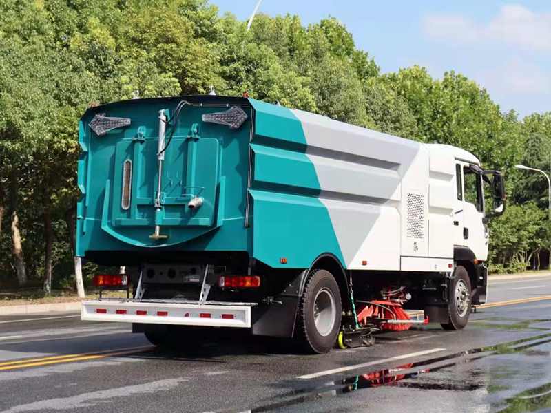帶高壓前噴霧,對路面污垢進(jìn)行定點(diǎn)沖洗清理,又可在較干凈的路面配合低壓沖洗作業(yè),進(jìn)行路面降燥處理,低壓前沖,左右高壓噴桿,高壓后噴霧,20米高壓沖洗卷盤,可吸可掃,相當(dāng)于一掃路車+一臺路面清洗車同時(shí)工作。